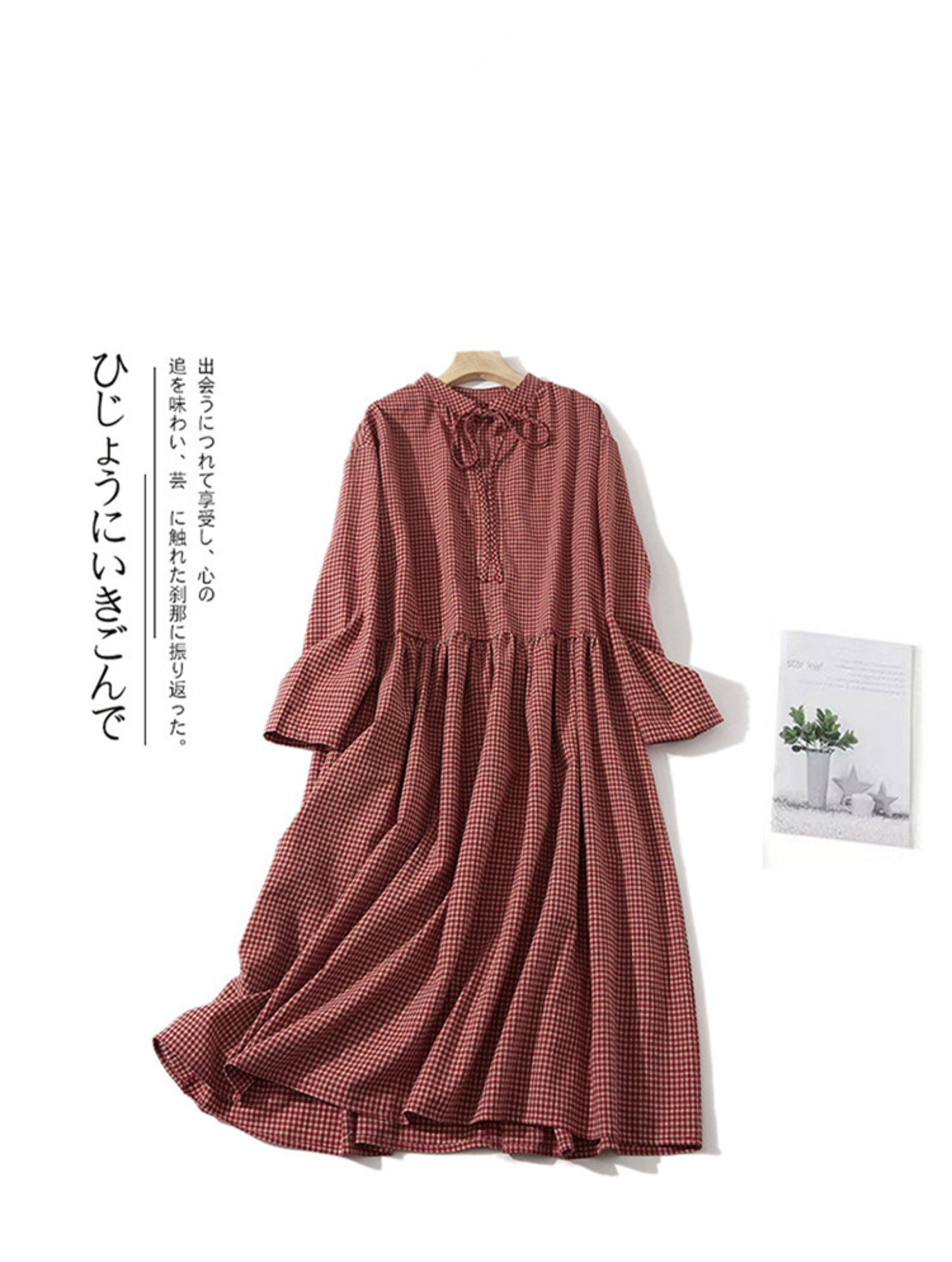 この1枚で今年風に ストリート コットン 大きいサイズ ワンピース スリム ロングスカート 格子縞