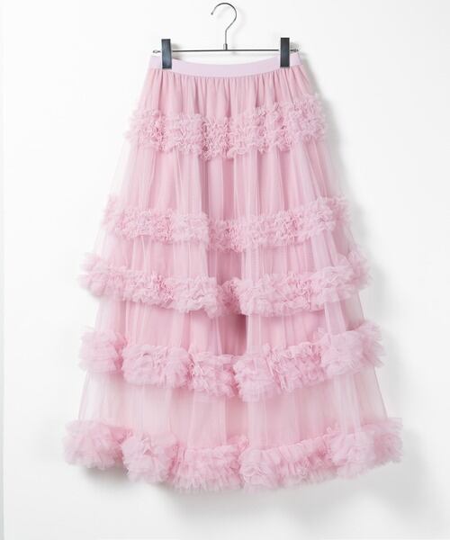 このチュールスカートは、足元から軽やかな風を感じさせるエレガントなスタイルを演出します。ハイウエストデザインで、脚長効果も期待できる一枚。華やかなスカートが、あなたの着こなしに彩りを添えます。