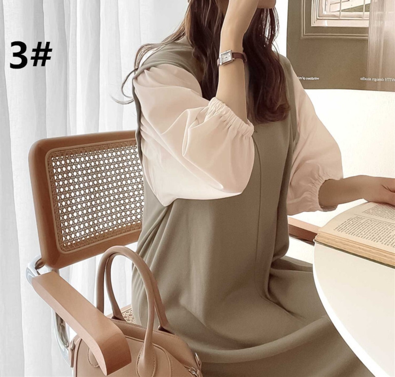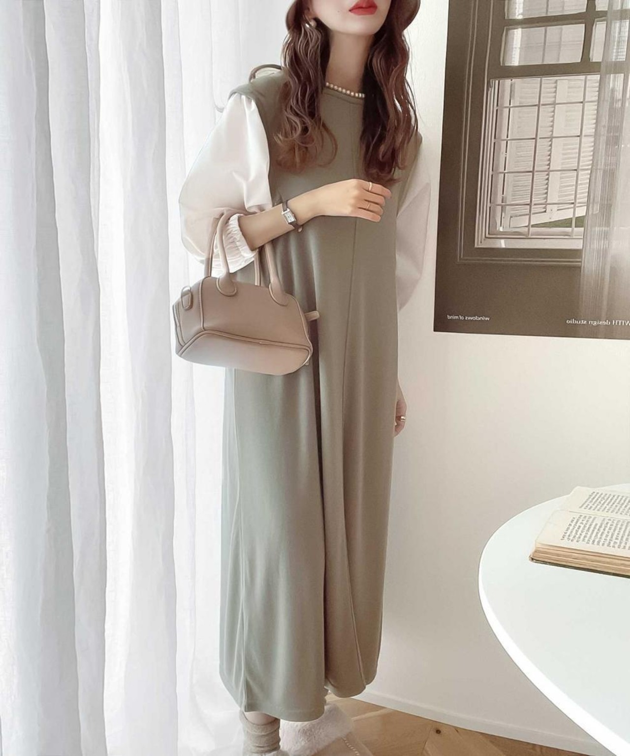 2024年夏新作 ワンピース ロング丈ワンピース レディース ラウンドネック ランタンスリープ