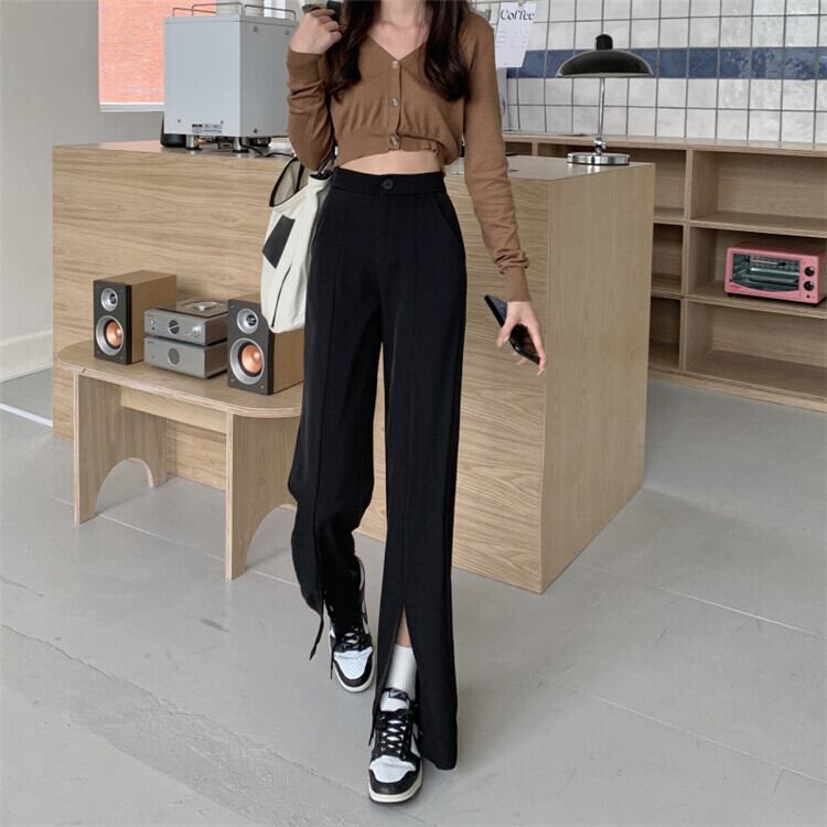<2024年秋新入荷、スタイリッシュなブラックスーツパンツが登場しました!スプリットデザインが特徴で、ハイウエストやスリムシルエットがあなたの魅力を一層引き立てるアイテムです。カジュアルからフォーマルまで幅広いシーンで活躍します!>